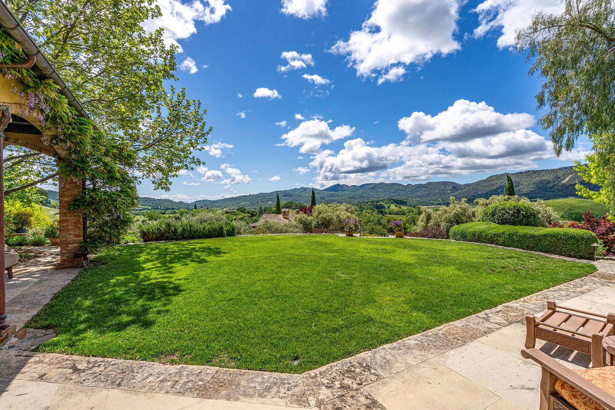 Vast level lawn off the rear loggia
