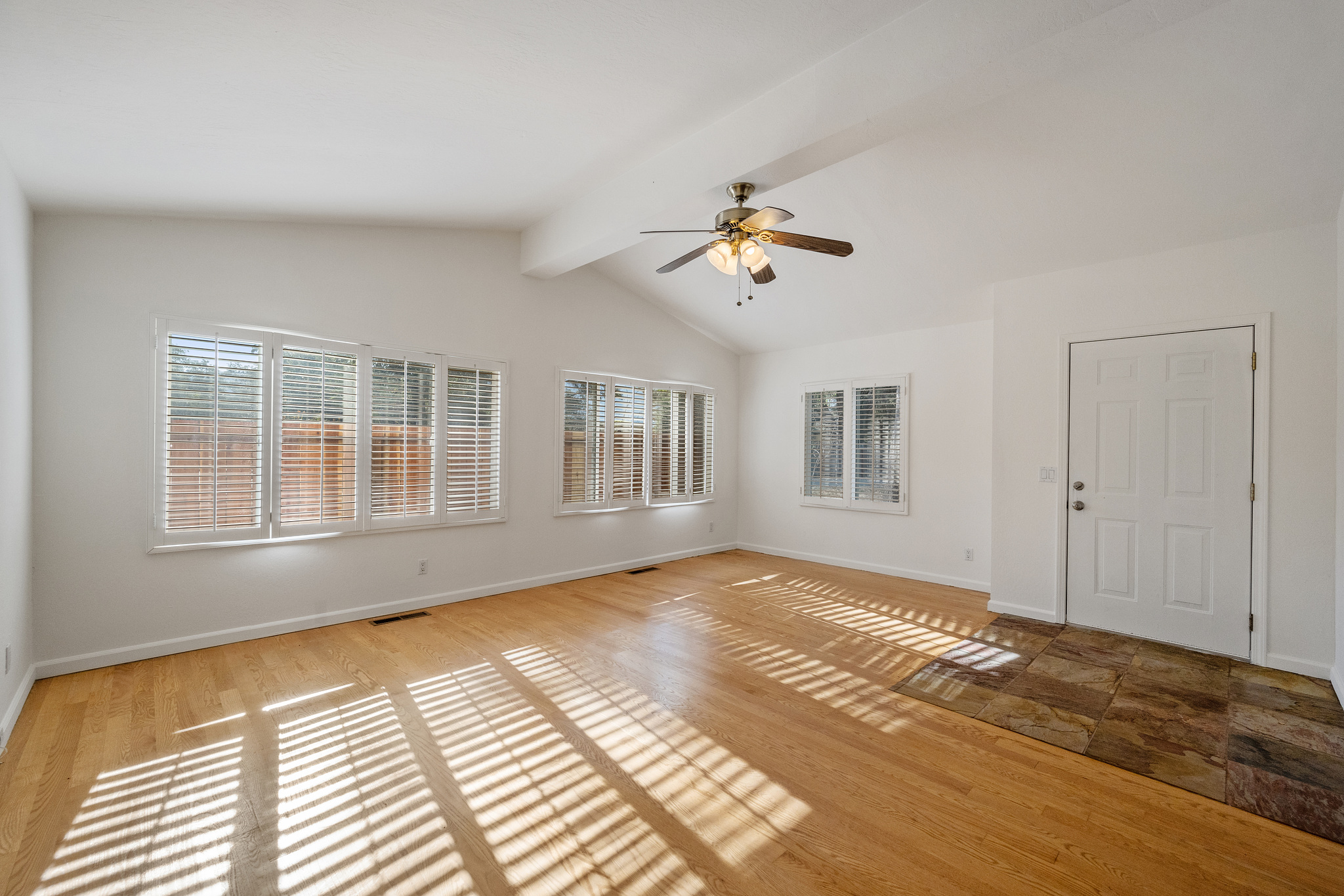 - Second bedroom and hallway bath with travertine shower